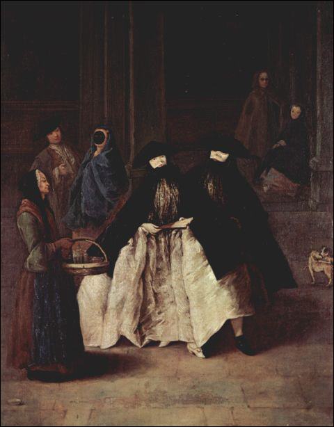 Venedig - Karneval Pietro Longhi (1702 – 1785) - Die Verkäuferin der Essenzen - um 1756 - Öl auf Leinwand - Museum Ca' Rezzonico - Bildquelle: Wikipedia - Lizenz s.u.